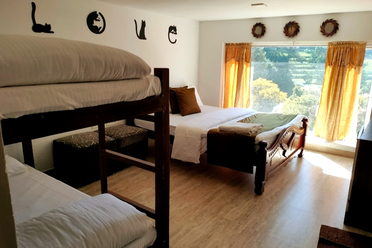 It is an independent three bedroom villa with a hall and a fully equipped kitchen. Surrounded by Chulika river and tea estate, the 2 acre property offers a positive vibe and great climate. You can relax with your most loved one's in the greenery with peace and privacy. Enjoy the stunning views of the misty hills , tea garden and River. It is great way to wake up listening to the flowing river and singing birds.