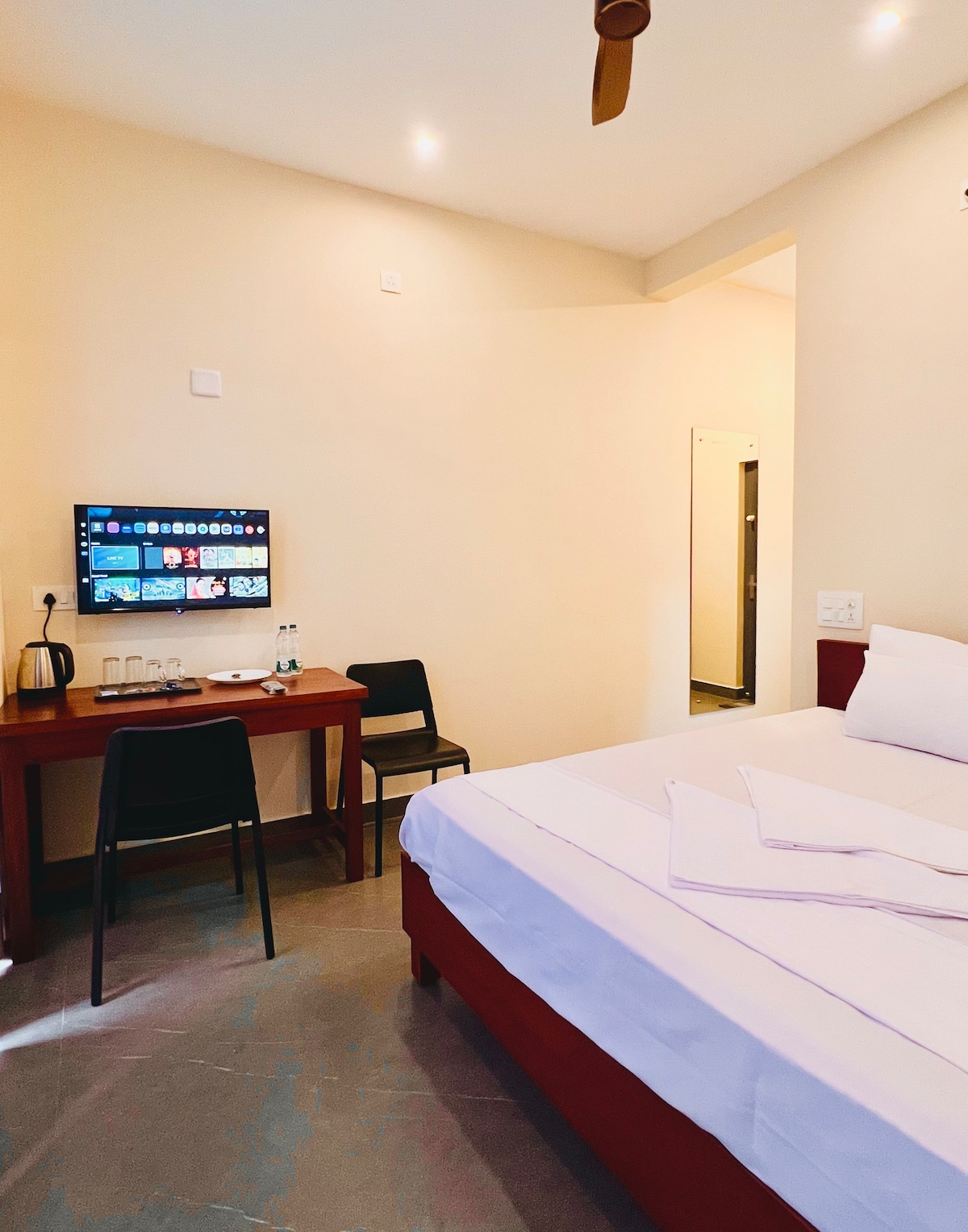 Welcome to Horizon Luxe, a refined hilltop retreat tucked away in the tranquil charm of Coonoor. Designed for comfort and serenity, this thoughtfully curated room offers breathtaking views of misty hills, lush greenery, and the rolling tea estates that make the Nilgiris so unforgettable.