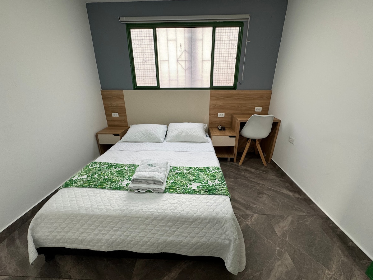 No querrás irte de este lugar tan único y encantador. Ubicado sobre la vía principal. Recepción y parqueadero 24/7; piscina, turco, restaurante, bar y zona de spa. Tu habitación cuenta con aire acondicionado, baño privado y televisión por cable. También tiene balcón con vista a las zonas verdes del hotel y a la piscina. Cerca del hotel podrás encontrar una tienda Oxxo, D1 y 2 supermercados. A 3 cuadras la zona de discotecas y bares. A 5 minutos la plazoleta central y la iglesia principal.
