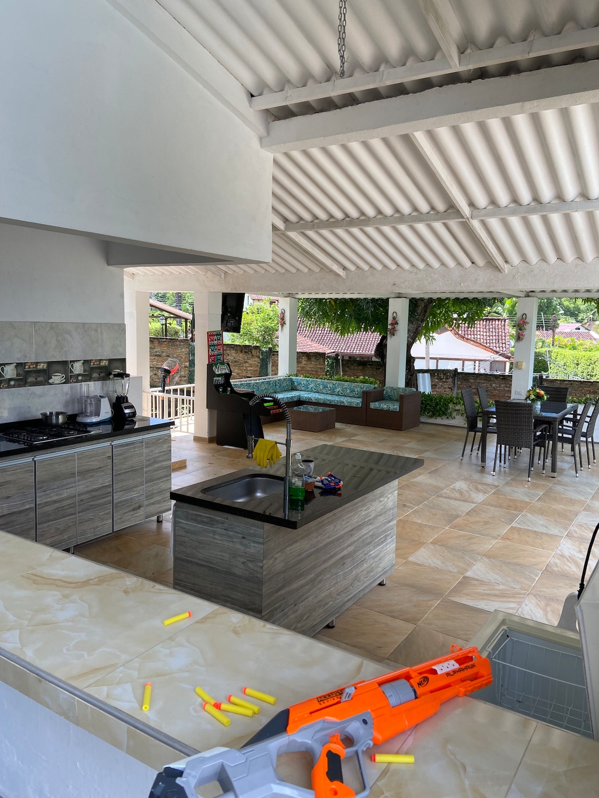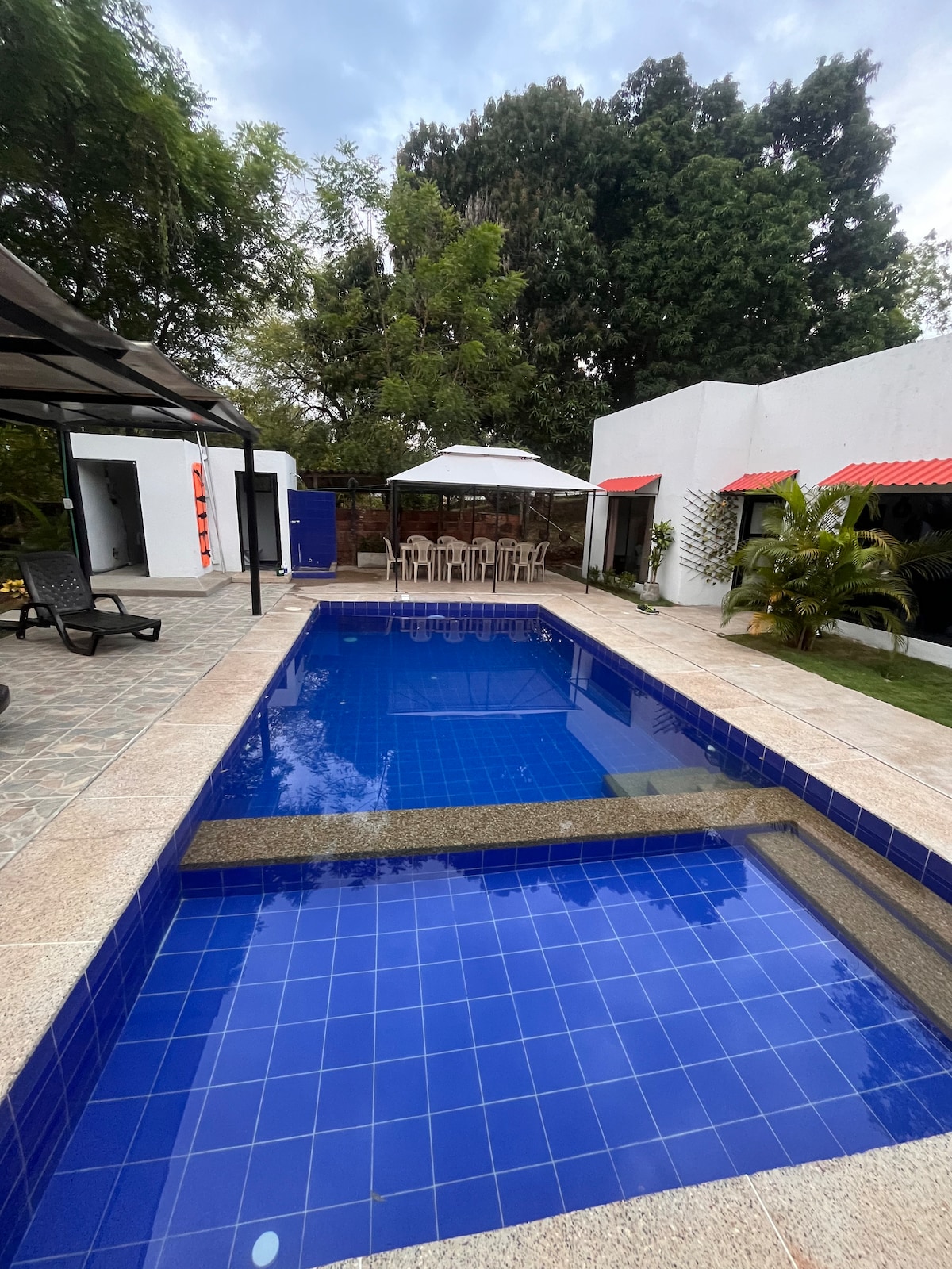 Espectacular Casa Quinta ubicada en condominio privado a las afueras de Melgar. Esta cuenta con piscina privada, WiFi, kiosco, BBQ, amplía zona verde, tres habitaciones, tres baños, comedor, cocina, parasoles, hamacas y zona social. El condominio cuenta con parques infantiles, lagos, cacha múltiple y cancha de tenis, además vigilancia las 24 horas del día. El condominio cobra 10.000 COP por persona para poner unas manillas que identifiquen a las personas que se están hospedando.
