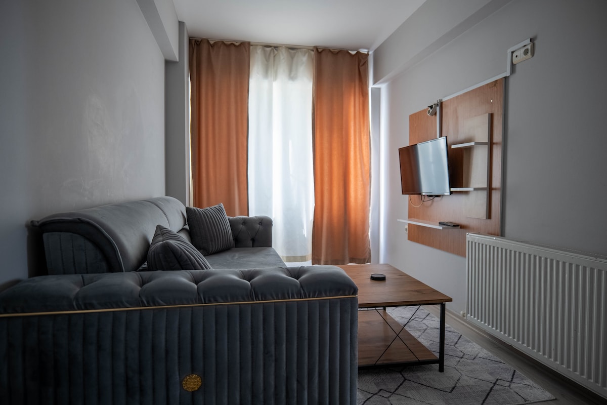 Modern ve konforlu 1+1 dairemizde kendinizi evinizde gibi hissedeceksiniz. Rahat koltuklu ferah salonumuzda büyük ekran televizyon ve hızlı internet keyfi yapabilir, mutfağımızın tam donanımı sayesinde dilediğiniz yemeği kolayca hazırlayabilirsiniz. Yatak odamızda ise günün yorgunluğunu atabileceğiniz konforlu bir yatak sizi bekliyor. İster iş ister tatil için gelin, tüm detaylar rahatınız için düşünüldü. Temiz, düzenli ve huzurlu bir konaklama deneyimi sizi bekliyor.