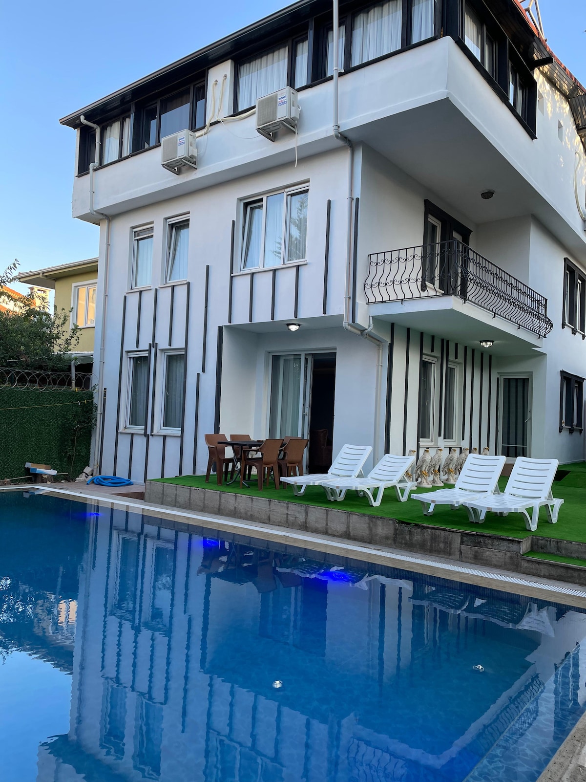 Geniş ve konforlu 9 odalı villamızda 20-30 kişiye kadar rahatça konaklayabilirsiniz. Özel havuzumuz, mangal alanımız ve bahçede keyifli yemek bölümümüzle sevdiklerinizle unutulmaz anlar yaşayın. Aile tatilleri, arkadaş grupları ve özel organizasyonlar için mükemmel bir tercih. Tam donanımlı mutfak, ferah odalar, otopark ve huzurlu ortamıyla konforu bir arada sunuyor.