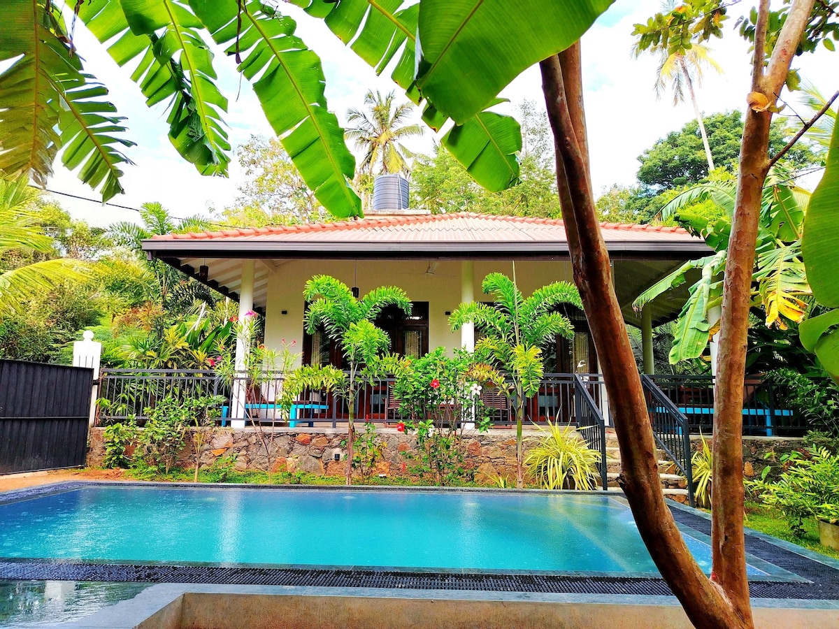 平均评分 5 分(满分 5 分),共 23 条评价带泳池的漂亮别墅,距离Mawella海滩70米
