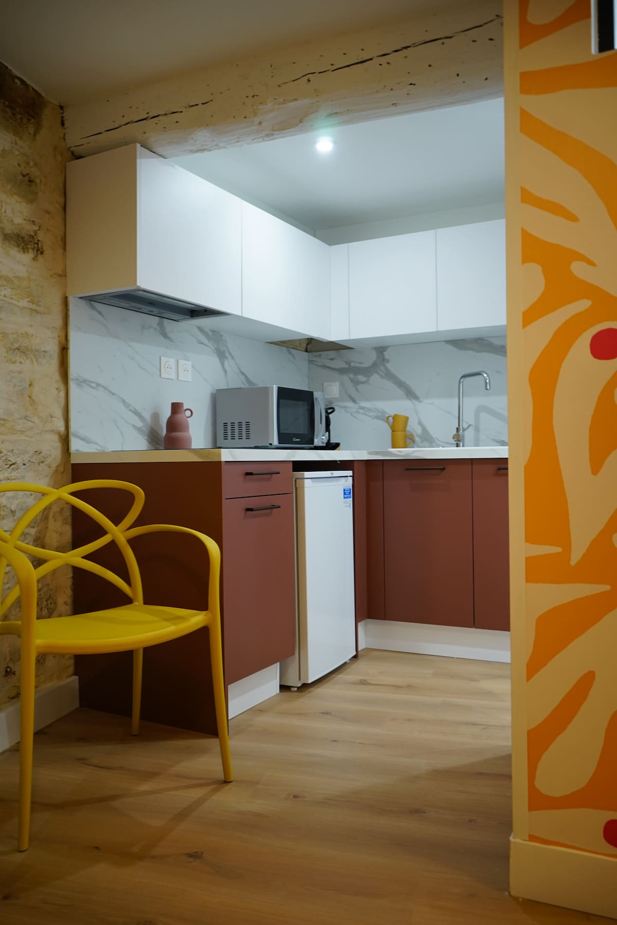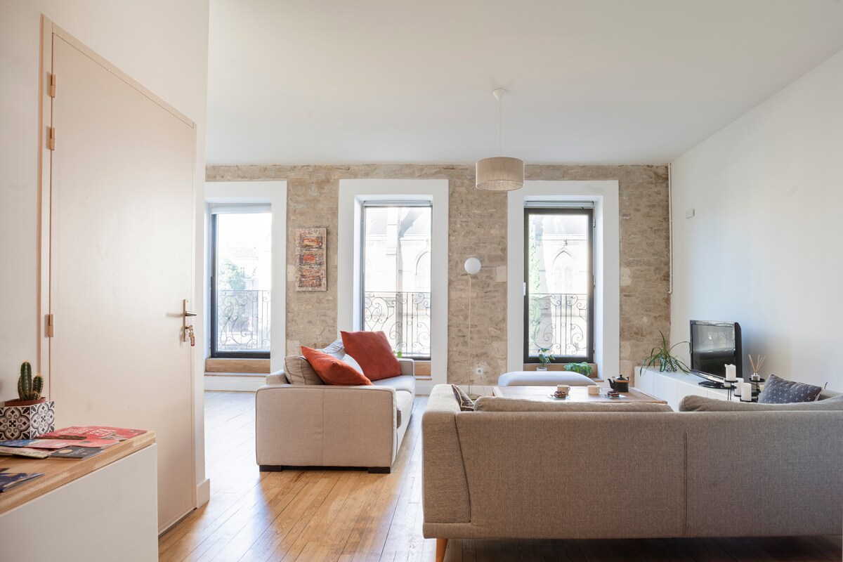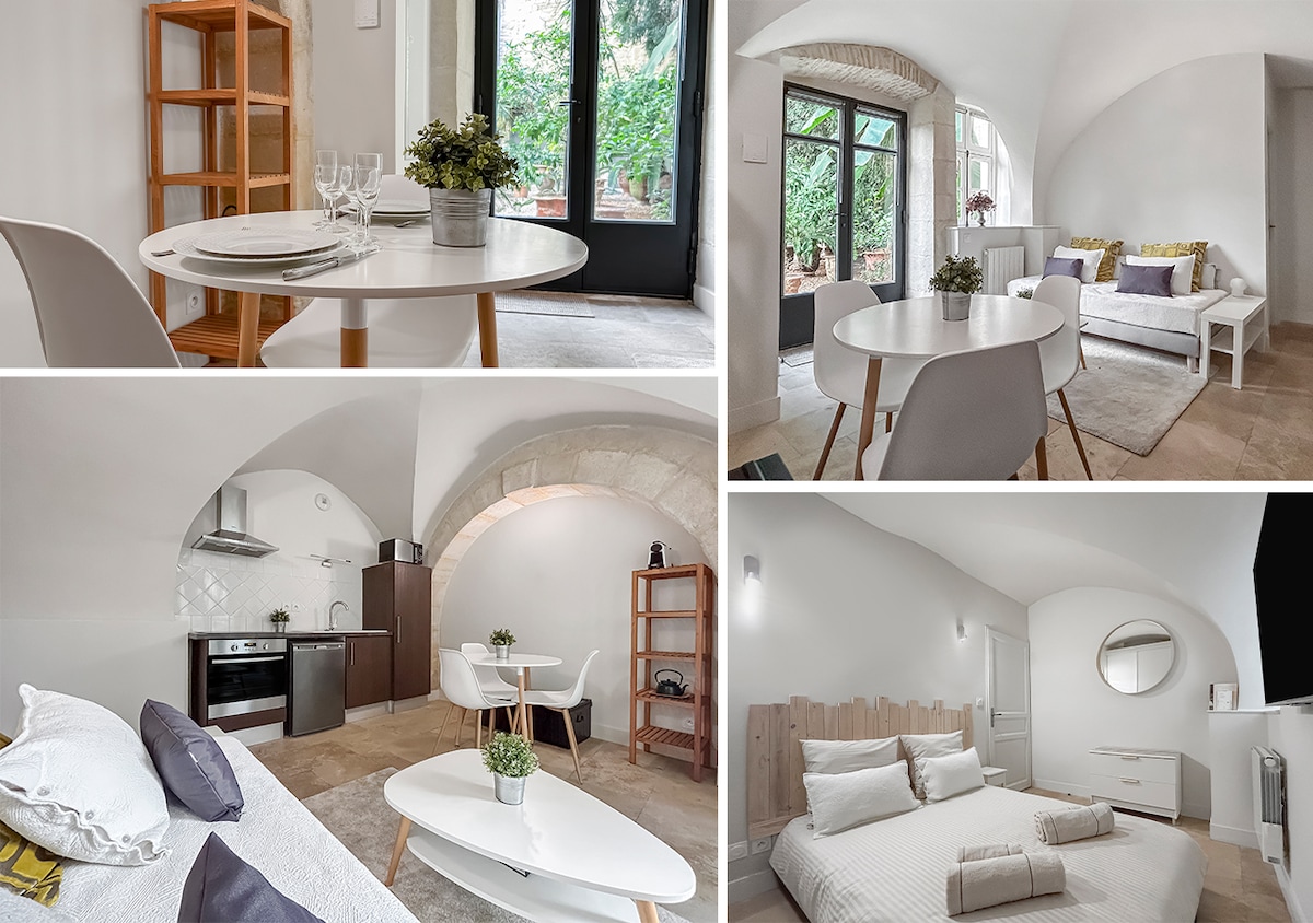 Goncourt42, c'est un appartement secret au cœur du passage où vécut Marc Bernard, Prix Goncourt 1942. L'appartement circule autour d'une terrasse ouverte sur une cour arborée, bercée par les cloches de St-Castor et le murmure des conversations d'un petit restaurant. Nous l'avons décoré à l'image de nos passions. La salle d'eau et la cuisine dernier cri se conjuguent avec des objets chinés. A votre disposition, un bureau calme, des transats pour siester et la foule de commerces de l'Ecusson. Clim