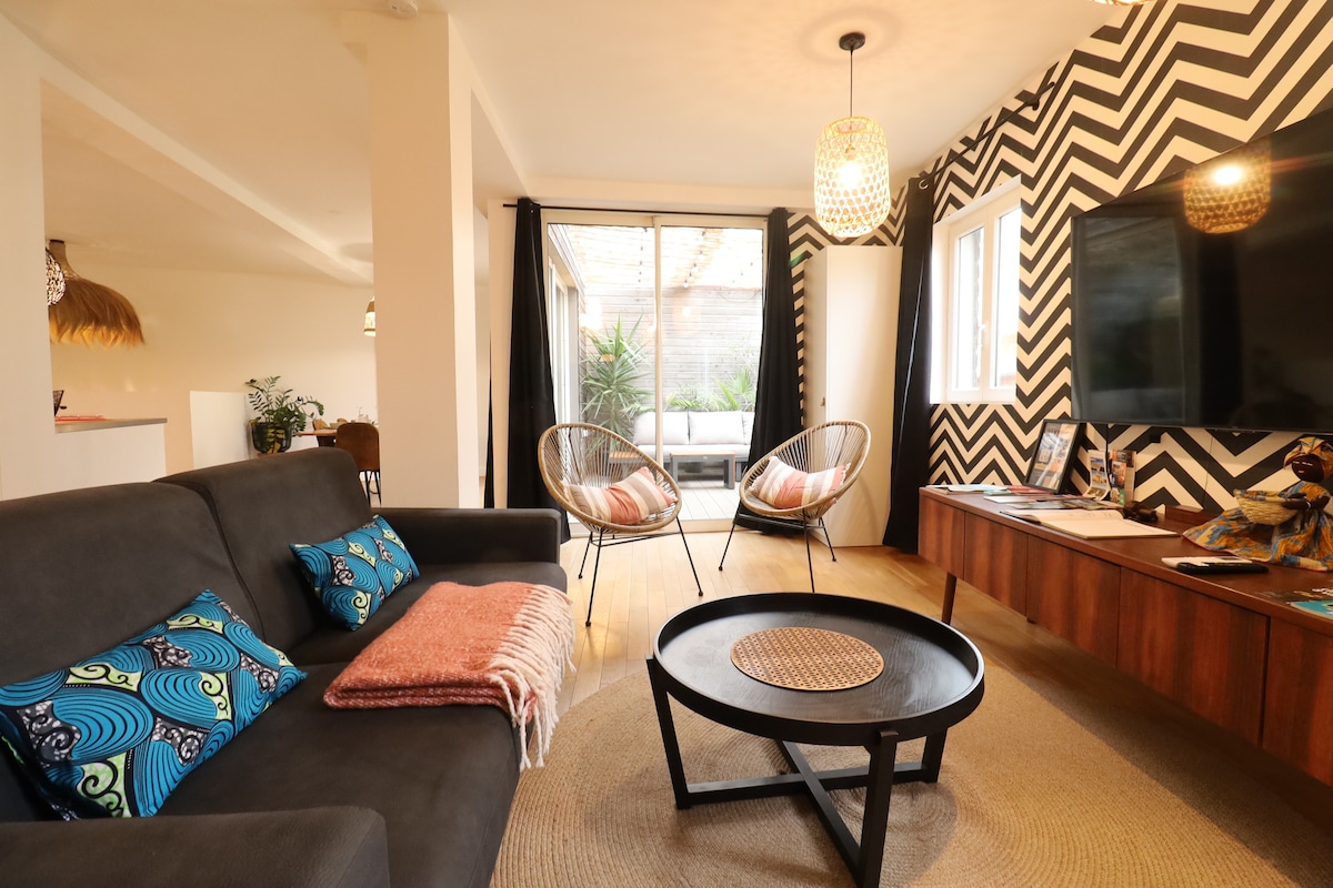 Laissez-vous surprendre par l’ambiance confortable d’AfroBoHome, un cocon rempli de couleurs, ambiance dépaysante à Nîmes, idéal pour familles, amis ou pros en quête de confort et d’évasion. Trois chambres cosy, de 2 à 6 personnes maximum, cuisine équipée, salon convivial, deux salles d’eau, deux WC, terrasse ensoleillée et aménagée. Garage sécurisé, fermé + un second sur demande, si disponible. Linge de lit et de bain fournis, Smart TV & Netflix. Un séjour unique, doux et vibrant vous attend !