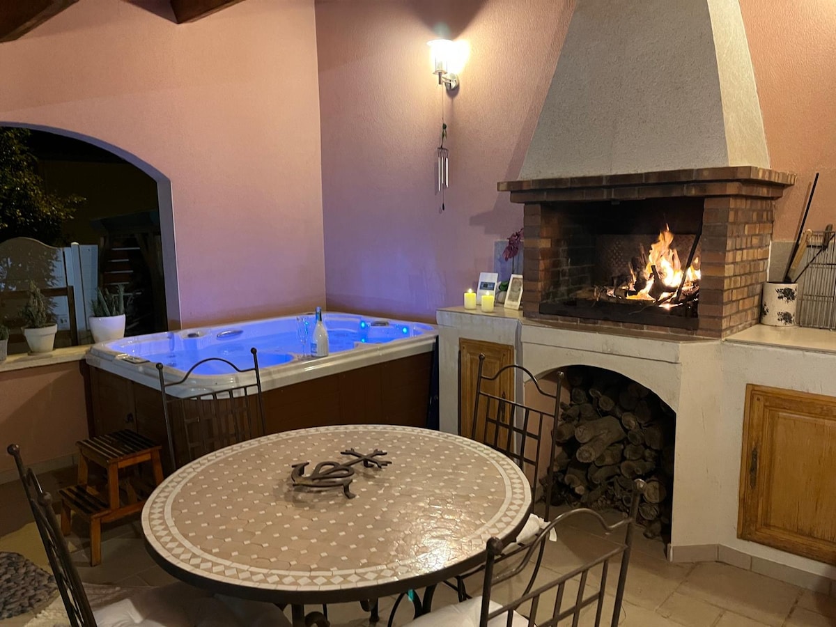 Maisonnette de 60 m2 dans le jardin d’une villa cachée par la vegetation, Grande piscine à partager avec les propriétaires chauffée (intersaison ) Pool house avec jacuzzi barbecue espace repas , salle de sport ,sauna extérieur en hiver une chambre avec un lit 140 l’autre avec un lit 160 pièce à vivre avec une cuisine (four traditionnel micro ondes plaques cuisson nespresso lave vaisselle réfrigérateur, lave linge)