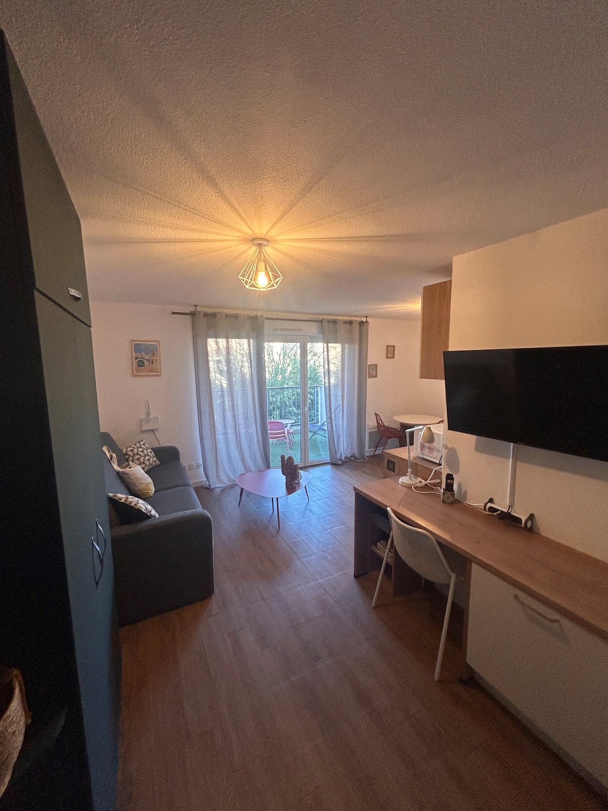 Joli studio au calme aux portes de Nîmes. Idéal pour visiter Nîmes et sa région. Parking sécurisé dans la résidence. Tram bus à 3 min à pied. A 15 min de la gare et du centre ville (20 min à pied). commerces boulangerie et restaurants à 5 min à pieds. Il est au 2ième étage, avec ascenseur. Local vélo fermé. Climatisation, wifi (fibre) et terrasse. Il dispose d'un lit confortable et d'un canapé lit en 120 cm (pour 1 ou 2 enfants) Le linge de maison (draps, serviettes de toilette) est fourni.
