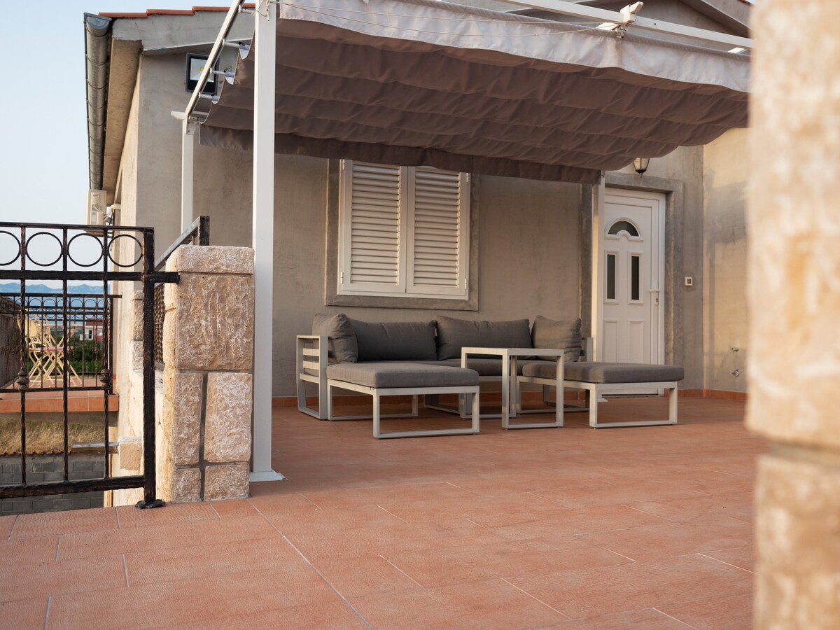 This house is located in beautiful peninsula Privlaka near ancient city of Zadar and just 3km from old,historical city Nin. Privlaka is surrounded by long sandy beaches. This house is located on the top location,first row to the sea with beautiful sea view from terrace." The house consist of three apartment, one on the ground floor and two on the first floor.