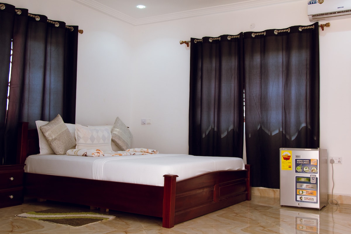 Malbert Inn is a beautiful guest house in a quiet haven at Sebrepor Villa, located near Michel Camp on route to Akosombo in Tema. Depending on traffic, it is about 25 to 45 minutes’ drive from Kotota Airport. It is a beautiful guest house in a quiet haven where you can experience the goodness of nature. It is a perfect place for couples, families or singles who want to get away to relax for short or *long-term stay. *We offer guests discounted rates for a longer stay.