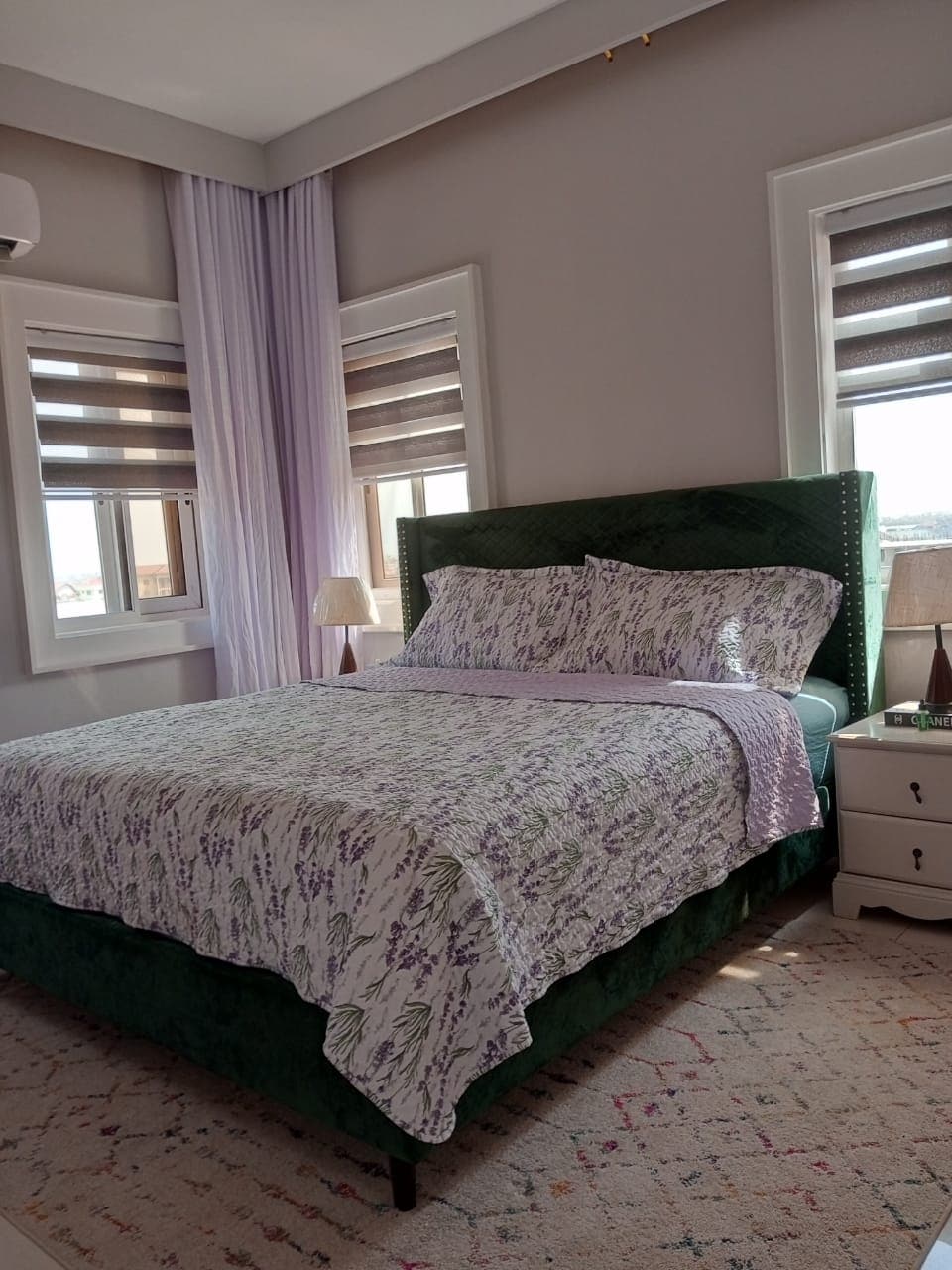 Luxurious, Modern Retreat in the City. Empress White House Apartment, a sophisticated 2-bedroom getaway in a gated community with 24-hour security and parking for 8. Perfect for up to 6 guests, 2 minutes walk from Devtraco Courts Estate. It boasts contemporary decor, an open living area, a fully equipped kitchen, and premium bedrooms, including a master suite with an Emperor-sized bed and ensuite bathroom. Amenities: smart TV, spa-like bathroom, and a private balcony with attractive views.