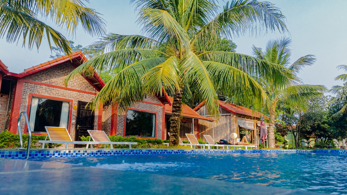 Tam Coc |平房双人床|早餐|泳池
