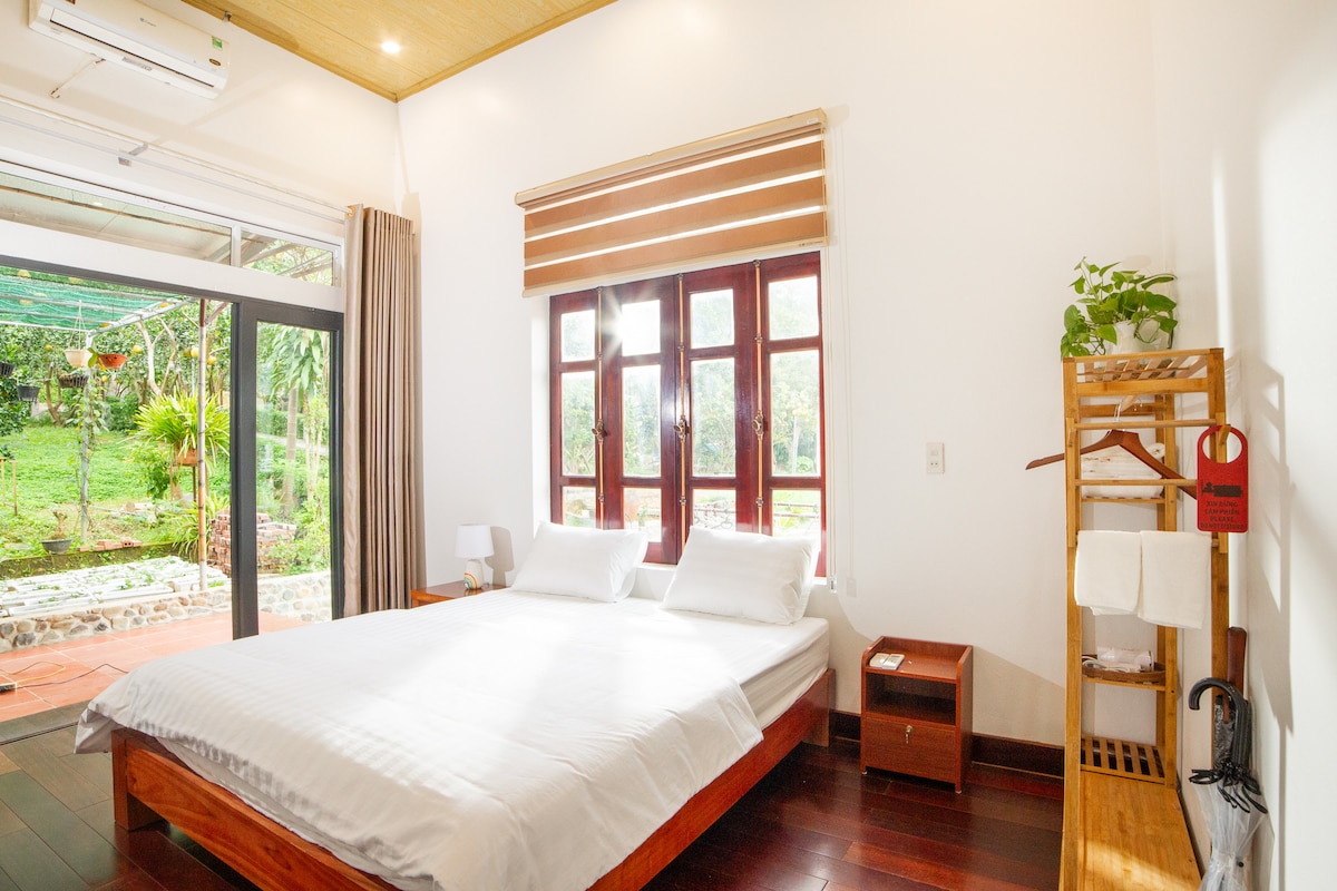 Located in the Trang An area, The Beautiful Bungalow in the flower garden, and the swimming pool is everything you need to enjoy your trip in Ninh Binh. Located by the beautiful Sao Khe River, close to any must-go destinations in Ninh Binh such as Hoa Lu Ancient Capitol, Trang An boat trip, Am Tien temple aka Tuyet Tinh Coc, Hang Mua trekking point, Tam Coc Only 10 minutes away from Ninh Binh City, it's a perfect getaway for you to stay away from the hustle and bustle of the busy life