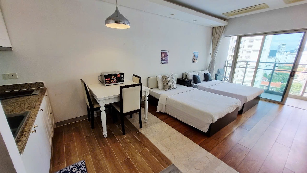 - 2 queen size beds with comfortable mattress - Private bathroom, fridge - Private kitchen - FREE Bottled Water, Towel - Free WiFi & motorbike parking - Free Luggage drop off - 24/24 access - Elevator access It is surrounded by all kinds of amenities: restaurants, Bình Tân market, Bao Dai Palace, Vinpearl ferry entrance, Nha Trang main Harbour, Institute of Oceanography, 100 Egg Mud Bath, etc...