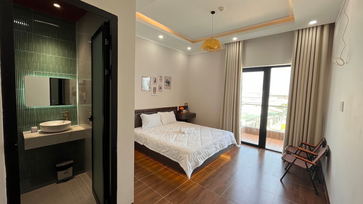 Tọa lạc ngay trung tâm Phan Rang- thư giãn và đậm chất nhiệt đới Sức chứa 18–24 khách, phù hợp cho gia đình, nhóm bạn , công ty nhỏ tổ chức du lịch, team building View biển thoáng đãng, kế bên là làng chài yên bình, chỉ vài bước chân là bạn có thể chạm đến bãi biển xanh ngát, lắng nghe sóng vỗ và tận hưởng nhịp sống chậm rãi đặc trưng của vùng biển Ninh Thuận. Vị trí thuận tiện, gần trung tâm thành phố, dễ dàng di chuyển đến các điểm tham quan nổi tiếng, chợ hải sản, quán ăn địa phương,...