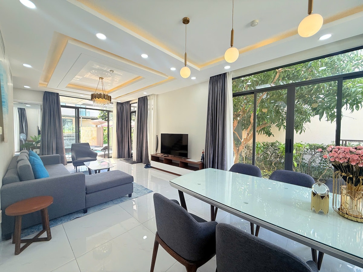 The villa provides guests with a terrace, sea views, a seating area, a fully equipped kitchen with an oven and a microwave, and a private bathroom. A fridge, a stovetop and kitchenware are also available, as well as a kettle. The nearest airport is Cam Ranh International, a few steps from the accommodation, and the property offers a paid airport shuttle service.