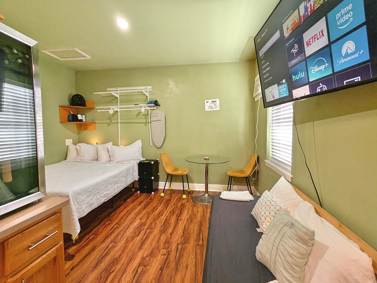 Beautiful studio apartment with full bathroom, private entrance, full kitchen, laundry. Interior is WWII era tongue-in-groove construction throughout. Great 2nd story deck for outside relaxation. Wonderful neighborhood and a short walk to many businesses, 2 blocks from streetcar. Safe area with 24 hour security. Gigabit fiber optic internet. New Orleans B&B registration #23-XSTR-14000