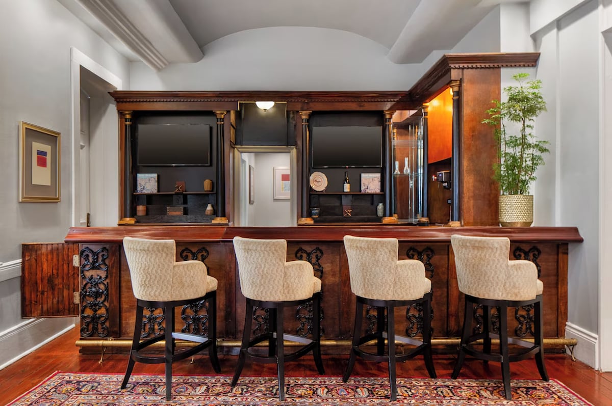 Experience New Orleans charm and modern luxury in this vibrant, 4-bed, 4-bath suite. Situated on the famous St. Charles Ave streetcar line, a few steps to Tito's Restaurant & Bar, walkable to the French Quarter, and Downtown. Beautifully renovated historic building with exposed brick walls, high-end finishes, and bold colorful design. This property brings the spirit of New Orleans to life. Spacious living room, fully equipped kitchen, everything you need for your stay. Outdoor pool with turf.
