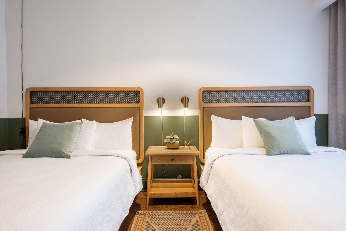 Welcome to our Bayou hotel room, where the ambiance captures the charm of the Southern swamp. This room includes a living room, Queen bedroom, bathroom & kitchen. The living room is styled with a sofa, a swivel chair with small table and a coffee table perfect for relaxing. The kitchen is equip with a fridge/freezer and dishwasher so you can feel right at home. Every detail in the Bayou themed room is carefully curated to offer guests a serene experience, right in the heart of New Orleans.