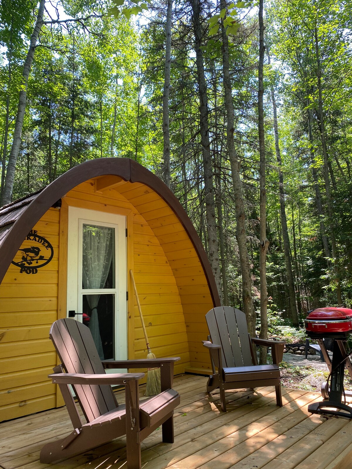 Nestled amongst the trees on our 52 acre farm in beautiful Chisholm township is our Chickadee Pod. Recharge your nature batteries in our off grid pod that comes fully equipped for your basic needs and right on Wasi Lake. Steps away you can enjoy canoeing, stand up paddle boarding and kayaking. Take in the sunsets, walk the trails, nap in the hammock, roast some marshmallows, paint a picture, read a book, listen to the birds, the trees, the wind. Leave connected, peaceful and rejuvenated.