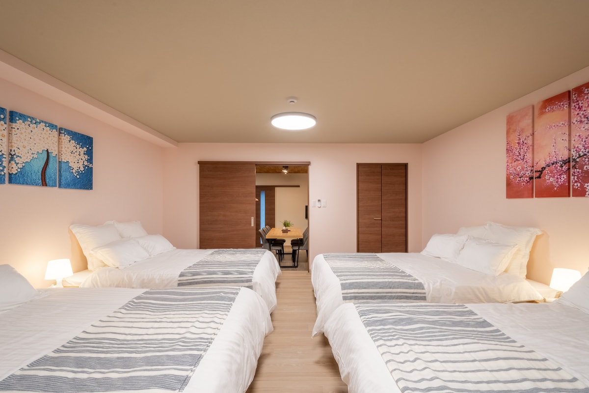 黑门店/双大床/家庭入住/最大4人/南海难波站8分/关西机场直达黑门市场难波道顿堀动漫街