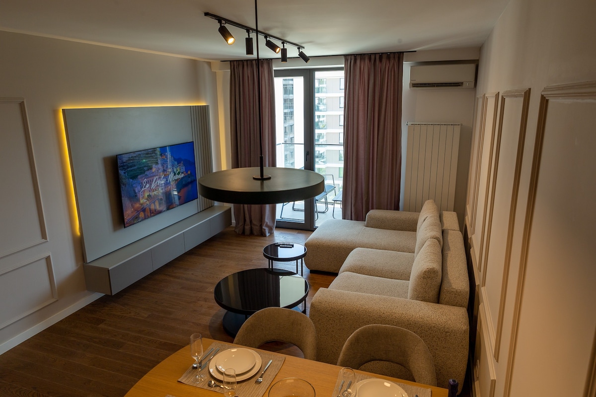 Luxuriously furnished apartment in brand new building in five-minute walk to the main pedestrian zone. One free private parking place is always available in the underground garage. Mac N1 is 51 sqm large one bedroom apartment. It is centrally heatet and also equipted with powerfull Mitsubishi inverter so you can easily cool or warm up the place. All beds have high quality mattresses. Guests can enjoy super fast Wi-Fi. The space is always tidy and clean as we have professional hygiene staff.