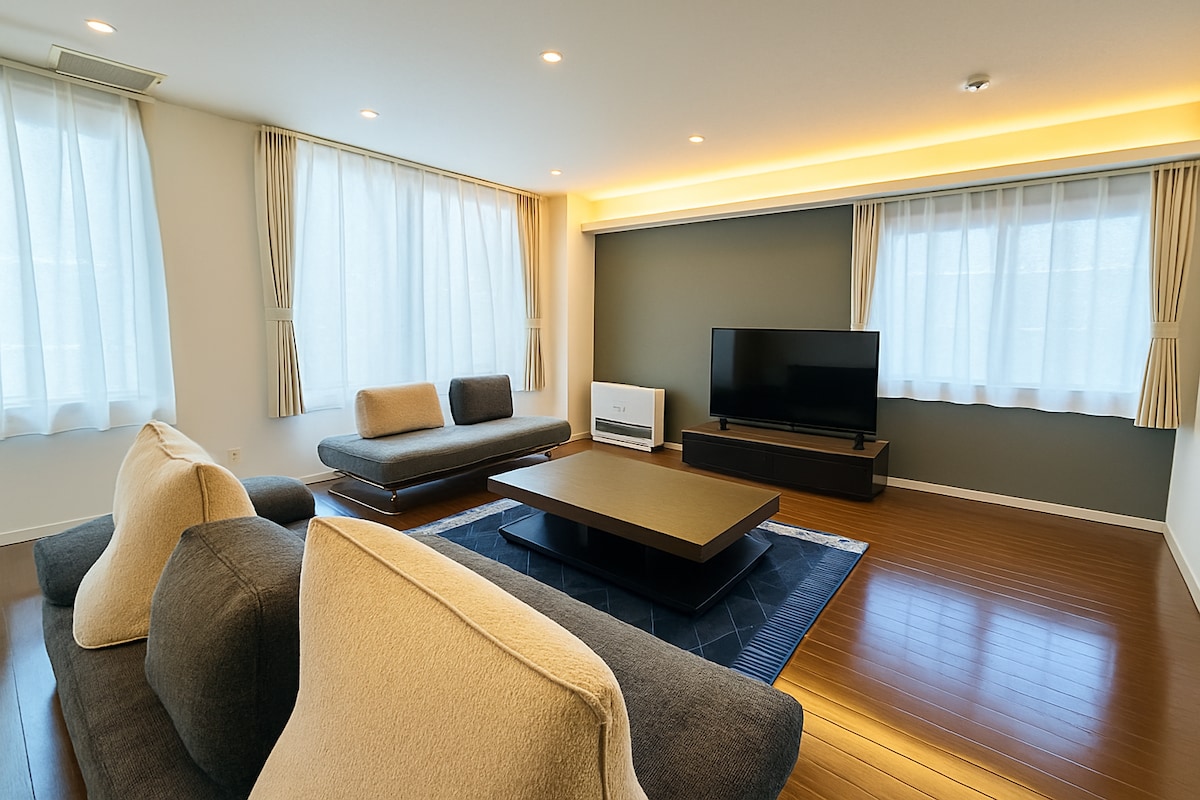The Fount Niseko is a luxurious duplex between Annupuri and Hirafu Village, each apartment offers two bedrooms, a tatami room, and modern amenities. With spacious living areas, fully equipped kitchen, and ski storage, it provides comfort and convenience for up to six guests. * Please note a vehicle is necessary for a stay at Fount Niseko to be practical.