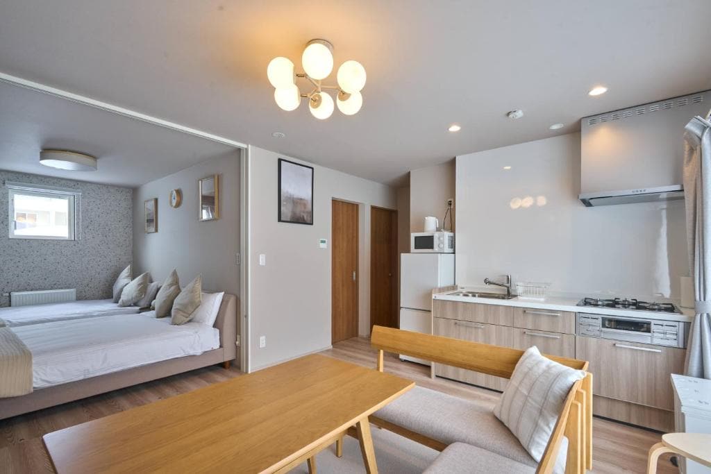 【OPEN記念50%OFF】 ~4/30まで│レビュー投稿にご協力いただける方歓迎│2泊以上でお得な連泊プラン ご滞在後にレビュー投稿へご協力いただけるお客様を歓迎いたします。快適な滞在をお楽しみください。 2025年12月新装オープン。 美しい羊蹄山を望む、広々とした1ベッドルーム+和室タイプのアパートメントです。ニセコひらふエリアに位置し、自然に囲まれた静かな環境でゆったりと滞在できます。 客室には快適なリビング・ダイニングスペースと設備の整ったキッチンを備えており、家族や友人との滞在にも最適です。ベッドルームに加えて畳の和室があり、布団を敷いて日本らしい滞在を楽しみながら最大4名までゆったりお泊まりいただけます。 周辺にはレストランやカフェ、温泉施設などがあり、自炊も外食も自由に楽しめます。夏は登山やサイクリング、マウンテンバイクなどのアウトドアを満喫でき、冬は世界的スノーリゾートとして知られるニセコでのスキーやスノーボードを楽しめるロケーションです。 広々とした空間で、まるで別荘のようにくつろぎながら、ニセコの大自然とアクティビティを満喫する滞在をお楽しみください。