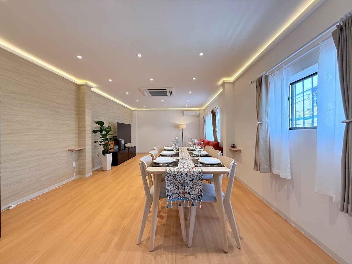 This is a major town within two kilometers of the center of Osaka's southern region.You can rent out the entire three-story house, which is about 200 m2 wide.Up to 9 people can stay in a comfortable and luxurious space different from the hotel suite. ☆Home elevator ☆A large bathtub with a shower of hot water ☆Two guest rooms with a shower room ☆Island kitchen ☆Special amenities I believe that they make your trip comfortable.