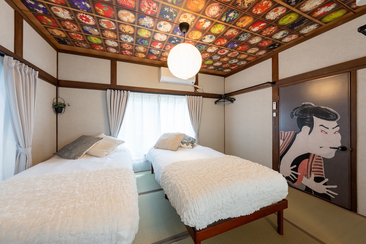 \2026年2月 NEW OPEN!/ 日本の千円札にも描かれた葛飾北斎の名作や、着物の伝統文様をあしらった天井画など、日本美術の美意識を感じられる一棟貸切の宿です。 観光だけでは出会えない、日本文化を身近に味わえる特別な滞在をお楽しみください。 東武スカイツリーライン「西新井駅」から徒歩9分。完全貸切のため、家族旅行や友人同士の滞在、リモートワークを兼ねた長期滞在も快適です。※無料・高速Wi-Fi完備 当施設のそばには日本三大大師の1つ「西新井大師」があり、厄除けで名高い由緒ある寺です。 ■人気観光地へ簡単アクセス 日比谷線直通:押上(スカイツリー)15分、上野19分、秋葉原21分、浅草29分、銀座35分、六本木46分、渋谷47分、恵比寿52分 乗り換え1回:新宿49分 ■徒歩圏内に便利なお店 スーパー・コンビニ・ドラッグストアが揃い、滞在中の買い物にも便利です。 【注意事項】 チェックイン午後4時/チェックアウト午前10時。管理人は常駐せず、清掃やリネン交換はありません。施設内は階段のみで、臭いの残る調理やバーベキューは禁止。ルール違反は罰金対象となる場合があります。