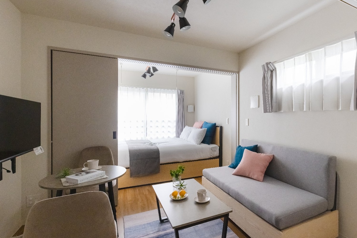 2340inn:池袋商区,地铁4分钟,天台富士山可见,绝美设计55平方米,日式榻榻米+客厅、2卫2浴
