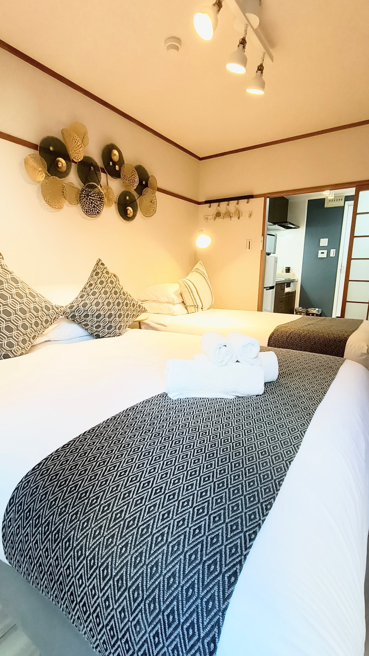 重新开业!享受特别的京都住宿体验! 我们的宽敞空间最多可容纳3位客人,且费用相同。位于京都市中心,交通非常便利。距离最近的车站步行仅需5分钟,新鲜超市步行5分钟,便利店步行2分钟,锦市场步行8分钟,所有设施都在步行范围内。您可以在设备齐全的厨房内自行烹饪,也可以享受附近店铺的外卖或配餐服务。此外,周围还有众多吸引人的餐馆和时尚的商店。 为了消除旅途疲劳,我们特别注重舒适的睡眠环境,提供了由日本床具公司——宫内厅御用品牌——生产的高品质大床。同时还有专门的檜木浴缸。洗手台和卫生间各有两个,并配有带干燥功能的洗衣机和衣橱,非常适合长期入住。 完全包租的私人空间,让您安心放松,尽享京都历史的独特魅力。进入屋内,您会看到西阵织的拉门和祖父这位版画师的作品。在这里度过一个特别的京都假期吧! 非常抱歉,京都市住宿税请您在入住当天以现金支付。 感谢您的理解与配合。