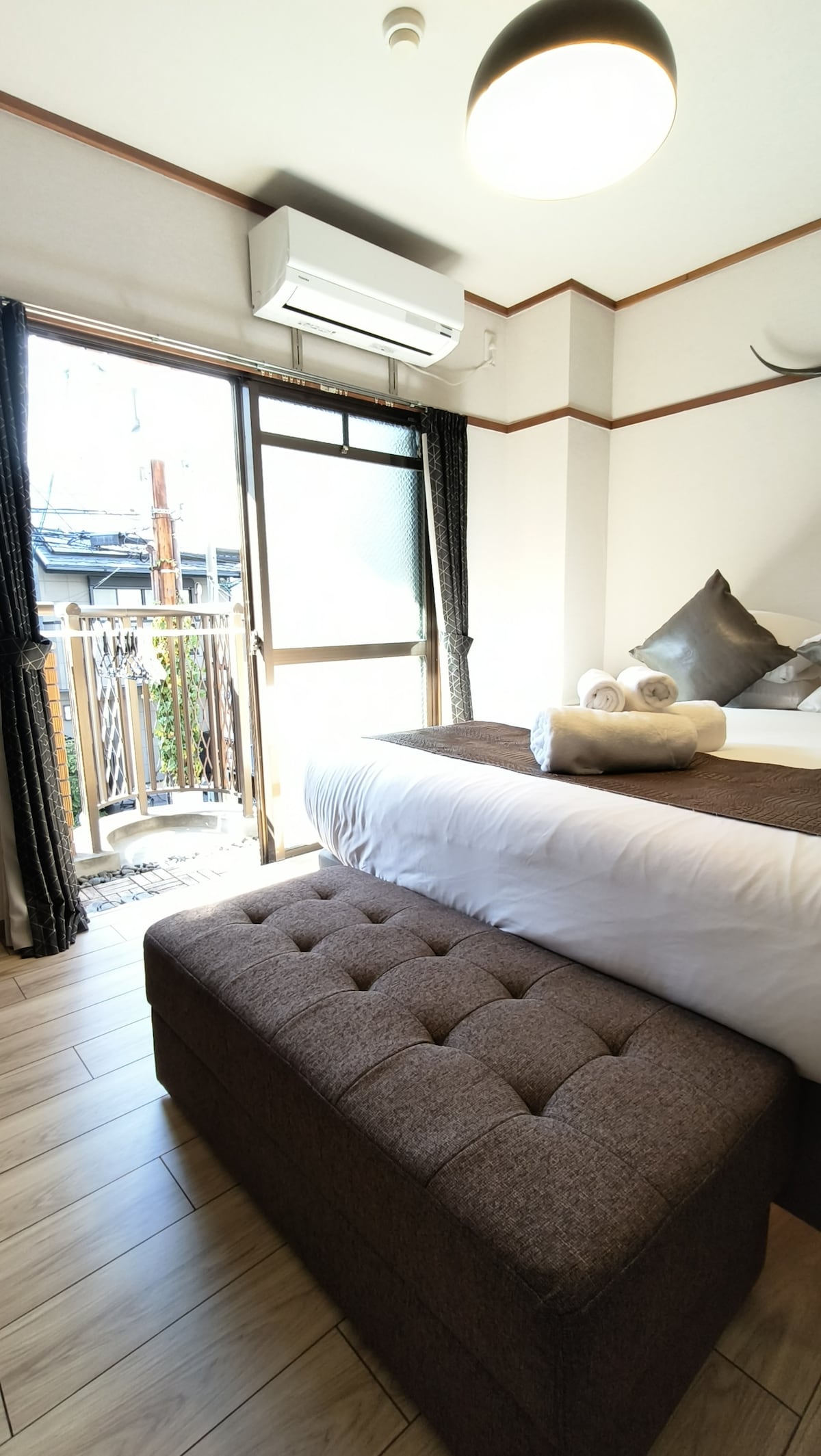 D5京都河原町錦市場地點超好,有陽台採光好,步行可到鴨川、秪園、高島屋[單人床+單人床]床好睡