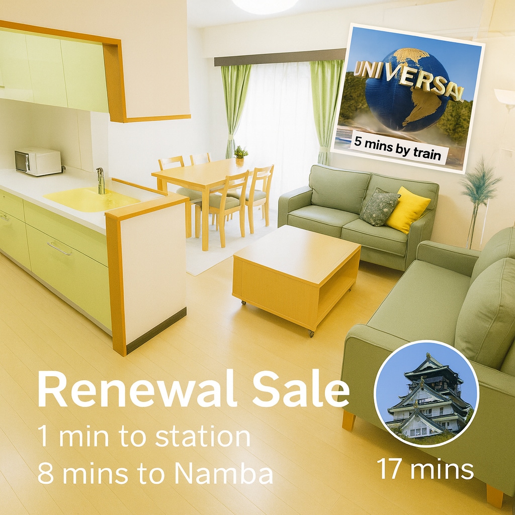 距离大阪站2站!距离车站仅1分钟步行路程!距离日本环球影城仅10分钟!整套出租,Boss Tamagawa