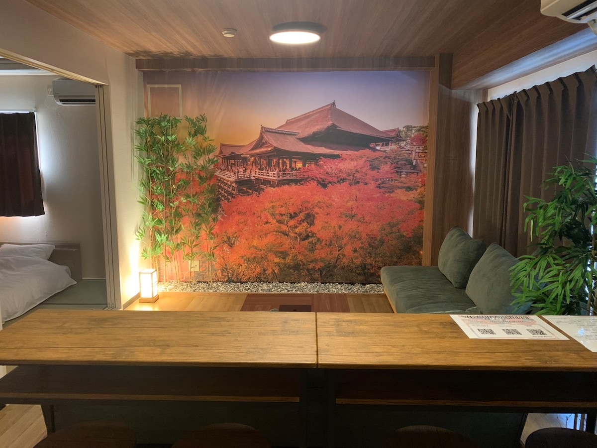 这是一间设计师风格的1LDK28.8㎡公寓。距离阪神难波线和大阪地铁中央线的九条站仅步行4分钟,乘坐阪神电车到难波站仅需3站,7分钟,到达关西机场只需一次换乘105分钟。从阪神九条站到环球影城只需一次换乘21分钟。步行15分钟即可抵达京瓷巨蛋大阪。位置优越,可轻松抵达大阪旅游的中心地带,如南部地区,心斋桥,新大阪和其他著名景点。附近有九条商店街等多个商业区,方便您享用美食、购物和观光。 这间公寓由知名设计师设计,拥有舒适的居住空间。 特点: -位于安静的住宅区的设计师风格的1LDK公寓 -最多可容纳4人入住 -步行1分钟即可到达超市和便利店 -配备基本烹饪设备 -整套出租 -自助入住系统 -免费洗衣机(提供免费洗衣液) -提供充足的洗浴用品(洗发水、护发素、沐浴露、浴巾、拖鞋、牙刷、化妆棉、棉签、剃须刀) -支持日语、英语、中文 -高速WiFi覆盖