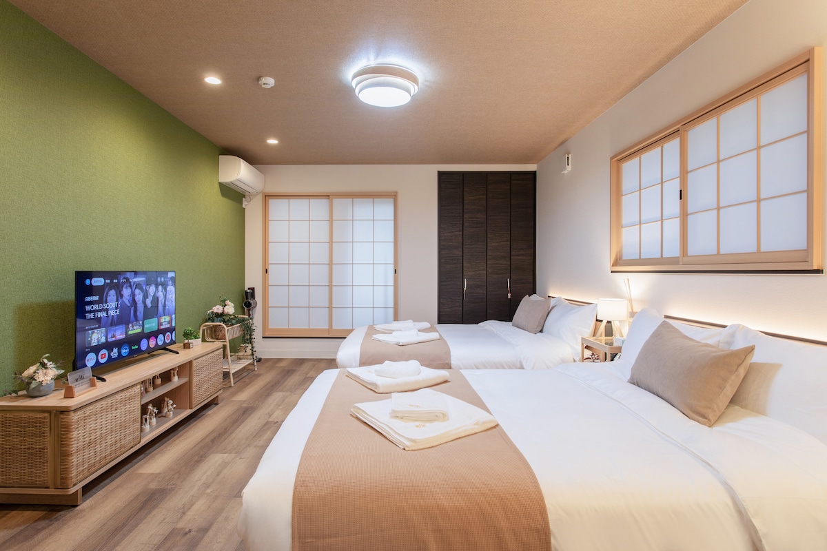 步入这栋隐于大阪市天下茶屋车站徒步仅4分钟日式民宿,仿佛穿越至一幅流动的和风画卷。这里,我们将传统日本的雅致与现代舒适交织,最多可容纳8位旅人,是您与家人、挚友共享日本旅行的梦幻居所。 **房源魅力:** - **和风诗境**:榻榻米散发淡淡草香,滑动门轻启,精致的品茶区静候您啜饮抹茶,沉浸于日本文化的悠远意境。 - **庭院秘境**:窗外竹影婆娑,枫叶摇曳,尤其在沐浴时,透过玻璃尽览庭院美景,仿佛与自然共浴,洗去旅途疲惫。 **周边与交通之美:** - **舌尖上的日本**:周边环绕地道日式餐厅,每一口都是对日本风味的深情礼赞。 - **直抵心扉的旅途**:关西机场直达天下茶屋车站,无需换乘,旅程从容启航。 - **关西风光尽揽**:车站交通如诗般流畅,京都的古韵、奈良的鹿鸣、神户的浪漫,以及大阪环球影城、通天阁、心斋桥与海游馆,皆触手可及. 在这里,您不仅入住一栋房子,更是开启一场真正的日本之旅。庭院的风铃轻响,浴室的自然低语,茶室的袅袅清香——每一处细节都在诉说和风的温柔。立即预订,让这场诗意的旅居成为您大阪记忆中最美的篇章!