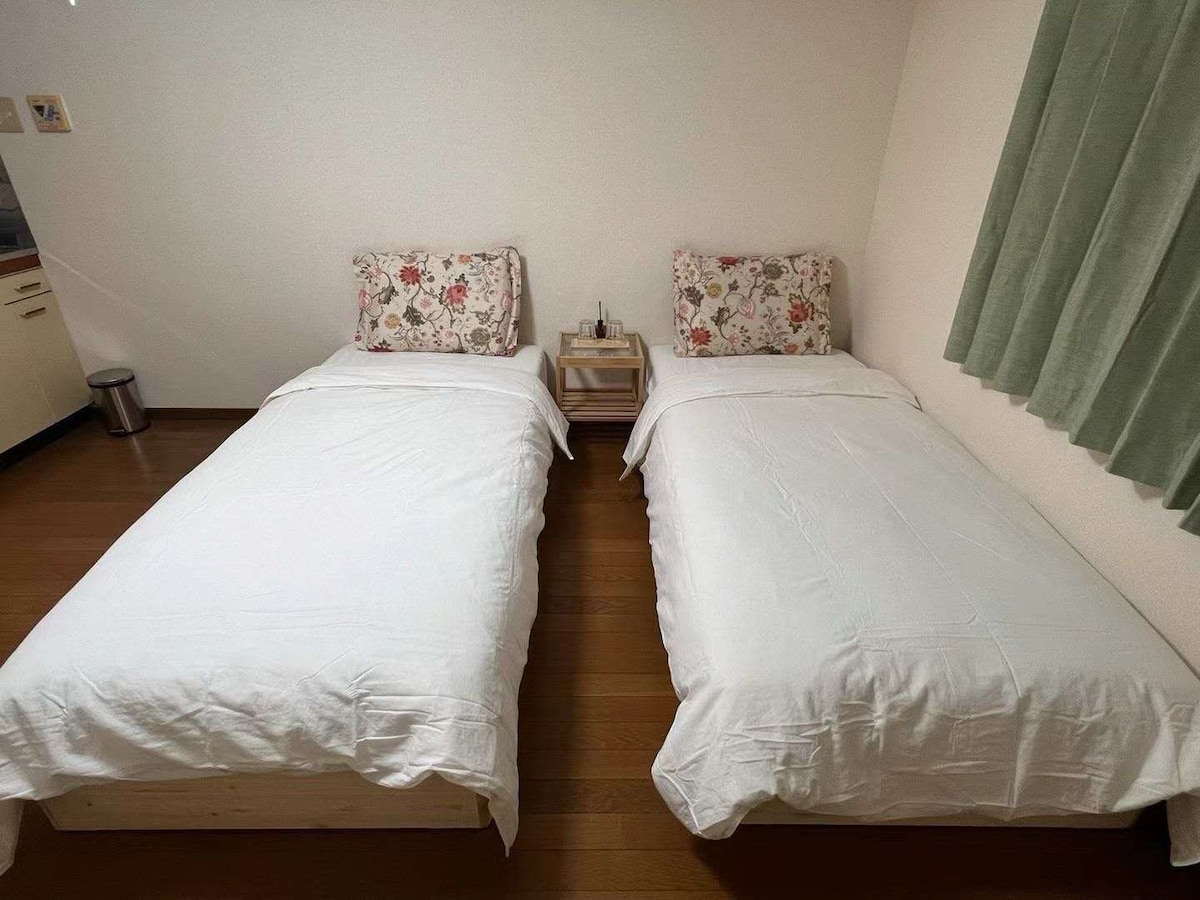 ■寝室 寝室は1つです。 ※部屋にはベッド、ソファベッドを設置しています。 ■キッチン 基本的な調理器具や食器、電子レンジ、オーブントースター、コンロ、電気ポット、炊飯器、冷蔵庫まで一式を揃えています。 ■室内の備品はすべて自由に利用可能 日常生活に必要なものは、ほぼ全てご用意しております。 ※備品の持ち帰りは厳禁です。 ■浴室シャワー、トイレは全て別です。 浴室にはボディーソープ、シャンプー、リンス、ドライヤーなどのアメニティーをご用意しています。 洗濯機と洗剤もご使用可能ですので、コインランドリーに行く必要はありません。 ■無料Wi-Fi 宿泊中は無線Wi-Fiの利用は無料です。 ※備え付けのWi-Fiなので、持ち出しはできません。 🔳Blu-rayプレーヤー お気に入りの映画鑑賞を。 ■無料自転車2台🚲 ■フロント フロントはありません。セルフチェックインの施設です。 ※ご不明点などがあればホストに連絡してください。