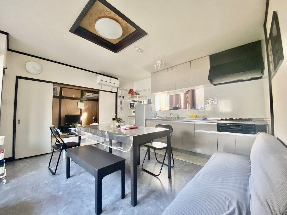 [大阪寺田町高档套房] ※已采取除菌对策! 一栋两层传统日本房屋,现代装修风格,带有一个日式花园和一个豪华浴缸。 步行 5 分钟即可到达 JR 大阪环线的寺田町站。 乘坐火车的话,只需 1 分钟即可到达天王寺, 6 分钟到达难波,35 分钟到达关西国际机场。 只需一次换乘,即可轻松到达日本环球影城、京都、奈良等大多数景点。 - 最多可住 8 人 - 带有设备齐全的厨房 - 私人住宅 - 附近有超市和各色餐馆 - 免费手机 WIFI