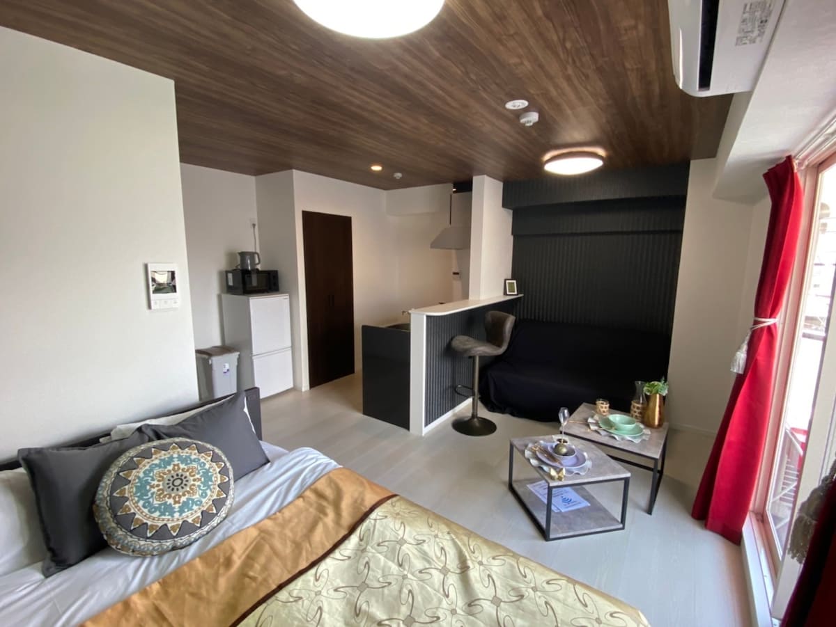 极简风格公寓7:难波紧凑型单间 & 24/7健身房