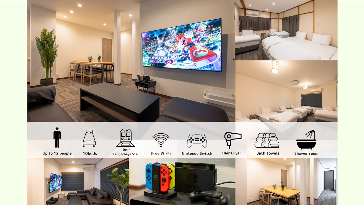 難波5分!/ 関西空港まで直通アクセス抜群/ 1室丸々貸切/ Nintendo Switch【rc】