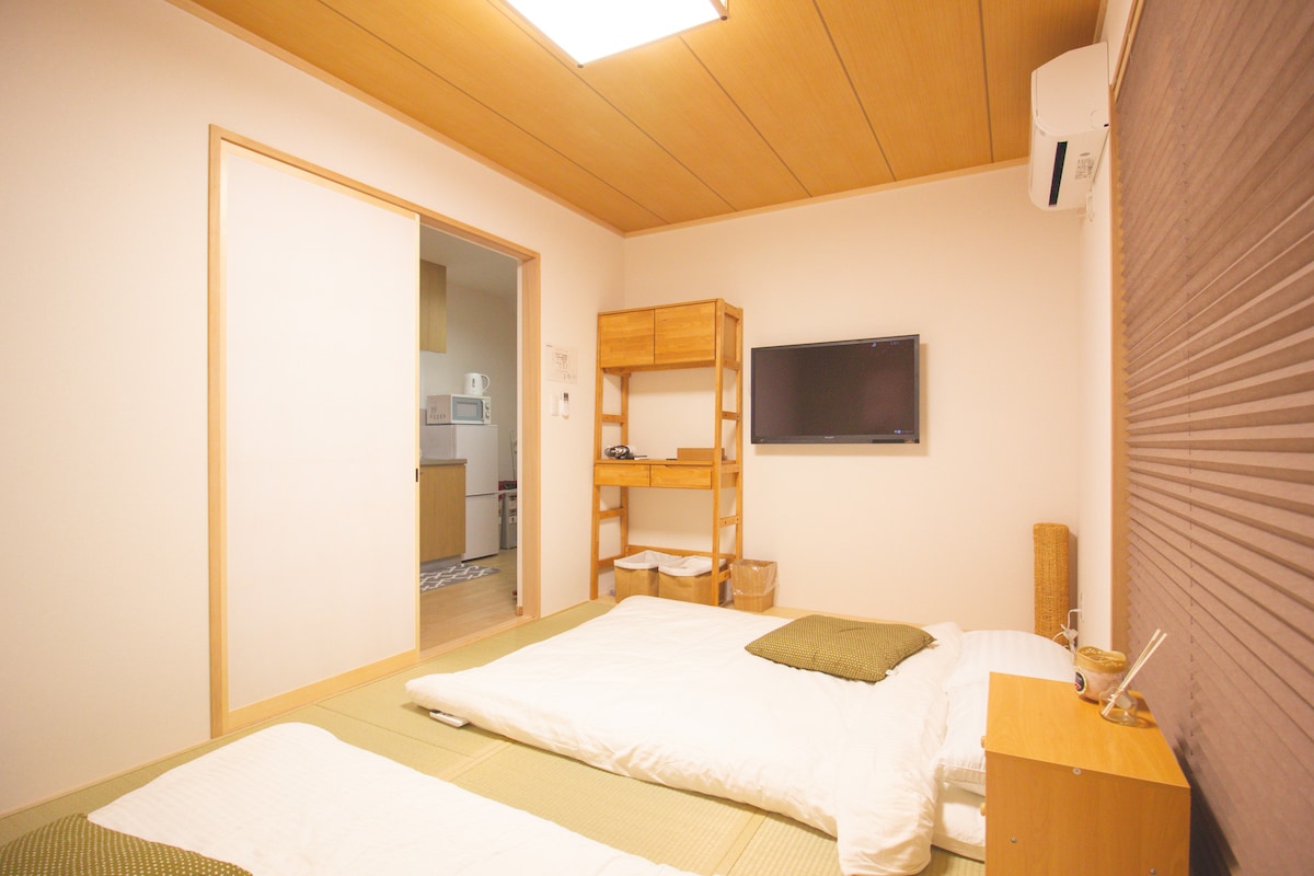 Welcome to TENSHIN, a warm, bright, and spotlessly clean home perfect for Osaka’s winter season. We prepare strong heating, fresh winter bedding, and a spacious living area where families and groups can relax comfortably. The large windows and terrace bring in soft daylight even in winter, making the whole home feel cozy and peaceful from the moment you arrive. Just 3min walk from Tengachaya Station, fast access to Namba, TENSHIN offers both warmth and convenience for your winter trip.
