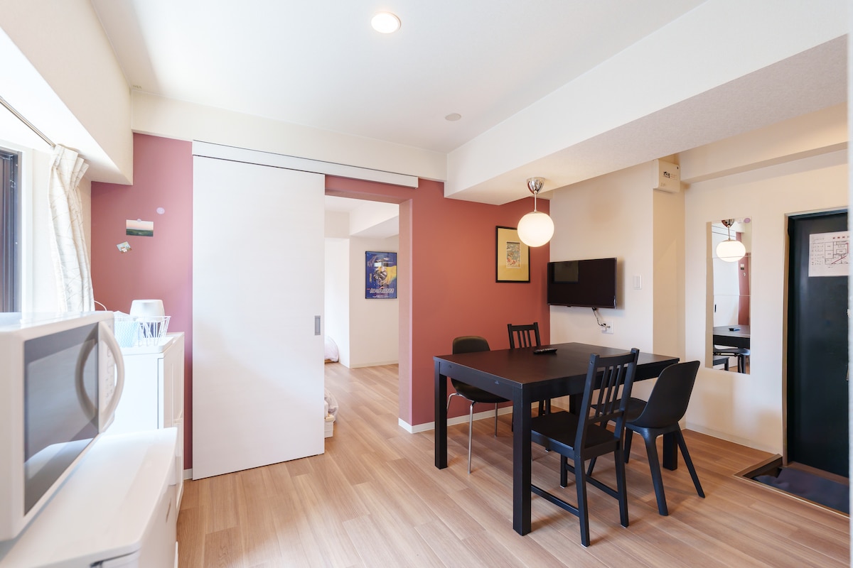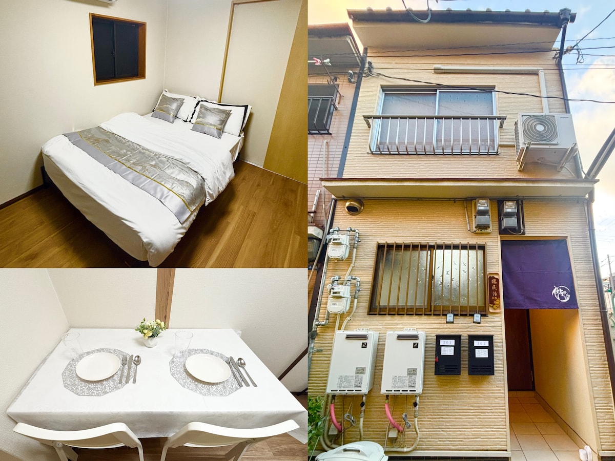 ★中文★日本語★English OK! (⑅σ̑ᴗσ̑)谢谢您点开我的房源! 您正在浏览的房源位于大阪市西成区【花园町车站】徒步2分钟 此房间是整栋户建的1楼部分,您将独享整个空间,独立出入口,独立卫浴厨房 床铺尺寸: 双人床2张 尺寸:宽1.5m×长2m 周边居住的都是日本当地居民,十分有生活气息,想要体验日本本土生活的您一定不要错过! 【前往繁华商圈】 乘坐地下铁: 2站直达难波站 (道顿堀黑门市场心斋桥商圈) 3站直达心斋桥商圈 6站直达梅田商圈 【前往关西机场】 徒步至新今宫车站(徒步11分钟)乘坐南海电车可以直达关西机场 【周边环境】位于闹中取静且生活便利的住宅区,有日本大型连锁超市Izumiya、FamilyMart便利店、Daikoku药妆店、各种餐饮店等均在房源徒步5分钟范围内 【房源设备】为每组客人准备了一次性拖鞋、毛巾和浴巾、衣架、FreeWi-Fi、一次性牙刷套装、吹风机、简易炊具、餐具、冰箱、微波炉、电热水壶、电饭煲、大功率空调2台(可制冷制热)、洗衣机(院子里)、洗发水、护发素、沐浴乳、洗手液等日常生活用品,希望您在这里可以度过愉快的时光!