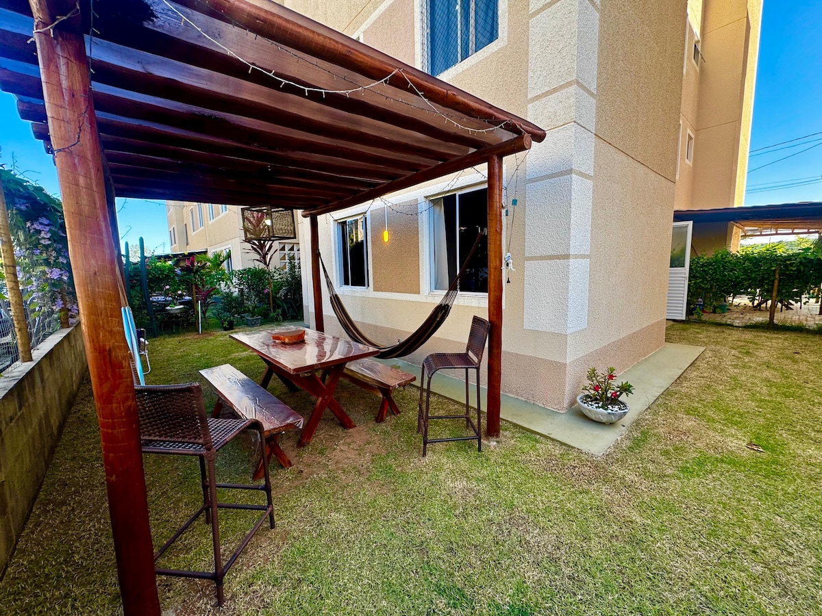 Apt em Pium próximo da praia de Ponta Negra, Centro de Convenções, mobiliado, perto das praias e lagoas do litoral sul e de fácil acesso ao litoral norte. Ideal para sua família e/ou grupo de amigos em um condomínio fechado com piscina, academia, quadra. Acomoda confortavelmente até 5 pessoas. O espaço possui 2 quartos com ar condicionado, 1 sala com sofá cama, 1 banheiro, cozinha, varandinha com rede. Disponibilizamos roupas de cama e banho. Equipado com internet e tv.