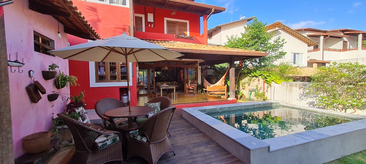 A Casa Solar chama atenção por suas janelas amplas, ornamentadas por plantas que trazem uma luz linda e uma ventilação deliciosa para dentro da casa. Temos 4 quartos, sendo 3 suítes, 1 banheiro e um lavabo externo. A casa também tem uma sala de TV e uma sala de estar integrada com a cozinha e com uma varanda - que dá acesso ao deck de madeira, à piscina e a área da churrasqueira. Tudo isso a 3 minutos, a pé, da linda praia de Cotovelo e a menos de 5 minutos de carro da charmosa vila de Pium