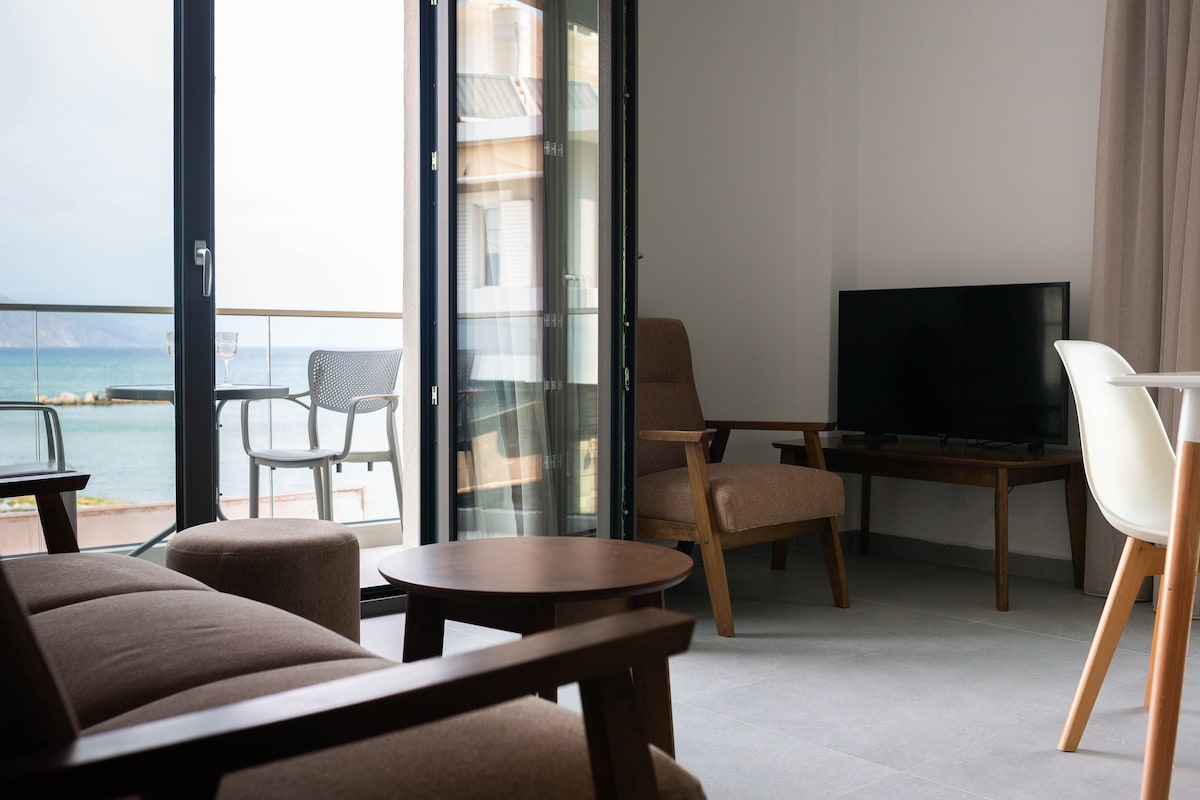 Καλωσορίσατε στα πλήρως ανακαινισμένα διαμερίσματα με μοντέρνο στυλ , κλιματισμό, καθαρά και λιγότερο από 100 βήματα από την παραλία. Με βεράντα μπροστά και πίσω για χαλάρωση όλες τις ώρες. Κοντά σε χώρους εστίασης, supermarket, στάση λεωφορείου στα 30m, ενοικιαζόμενα αυτοκίνητα κ.α Διαθέσιμο δωρεάν parking, smart TV, δωρεάν wifi και άλλες παροχές Θα χαρούμε να σας φιλοξενήσουμε και σας ευχόμαστε μια ευχάριστη και ήρεμη διαμονή στο χώρο μας!