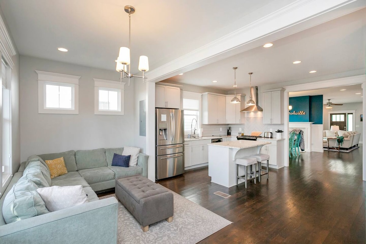 Walk to Nissan Stadium 2 King Beds 2 Queen Beds 2 Queen Sofa-Beds Free High-Speed Internet Xfinity Cable & AppleTV Fenced Driveway for up to 4 Vehicles Additional Free Street Parking Combo K-Cup & Drip Pot Coffee Maker Weber Grill (Propane) Two Private Porches City Skyline Views Laundry Room Spa Bath Amenities Quality Linens, Towels & Premium Bedding