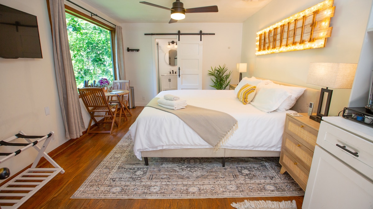 Pick vegetables and herbs from the garden to make fresh salads in the well-stocked kitchen of a home that blends barn comfort with modern touches. African safari photos, farmhouse glasses, and wood features add to the coziness of the interior. STRP Permit: 2/0/1/8/0/0/6/8/4/3 Set just minutes from an urban downtown, you can feel like you've escaped to the countryside at this private garden cottage. Complete with an vegetable garden to make fresh salads and a fire pit to kick back at when the day is done, this space is inspired by and decorated to make you feel like you're enjoying Green Acres. Be it photos of African Safari, the farmhouse glasses, or modern wooden features, this guesthouse gives you the comfort of modern living with the feel of barn comfort. As our guest, feel free to pick fresh vegetables from the garden, enjoy a bonfire under the lights, and lounge in one of adirondack chairs on the deck. We also provide you with a private parking space in the back alleyway. East Nashville is a laid-back, artsy section of Music City. This historic district is a hub of arts, local music, award-winning dining, boutique shopping, and craft beer. Head across the river to experience all the nearby downtown attractions. Lyft, Uber, Bird and Lime are all cheap and easy modes or travel. East Nashville is also very walkable with a grocery store, post office, coffee shop, restaurants, and more within a block or two.