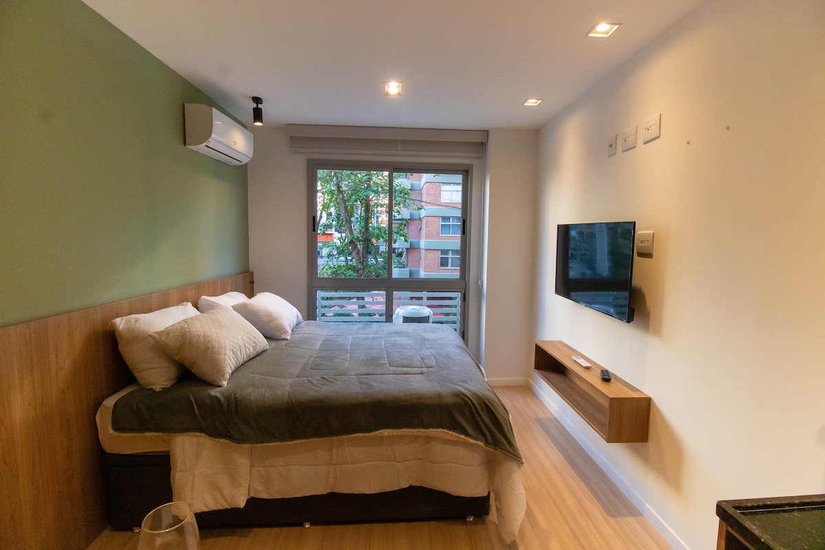 Sobre o imóvel: - Studio com 25m²; - De 12 a 15 minutos caminhando até à praia; - Garagem privativa; - Acomoda confortavelmente até 3 pessoas; - Varanda espaçosa. Destaques: - Wi-fi de alta velocidade; - Ar condicionado e ventilador de teto para seu conforto; - Smart TV; - Cozinha equipada com cooktop por indução duas bocas, forno elétrico, microondas, air fryer, sanduicheira, cafeteira dolce gusto, cafeteira elétrica e liquidificador.