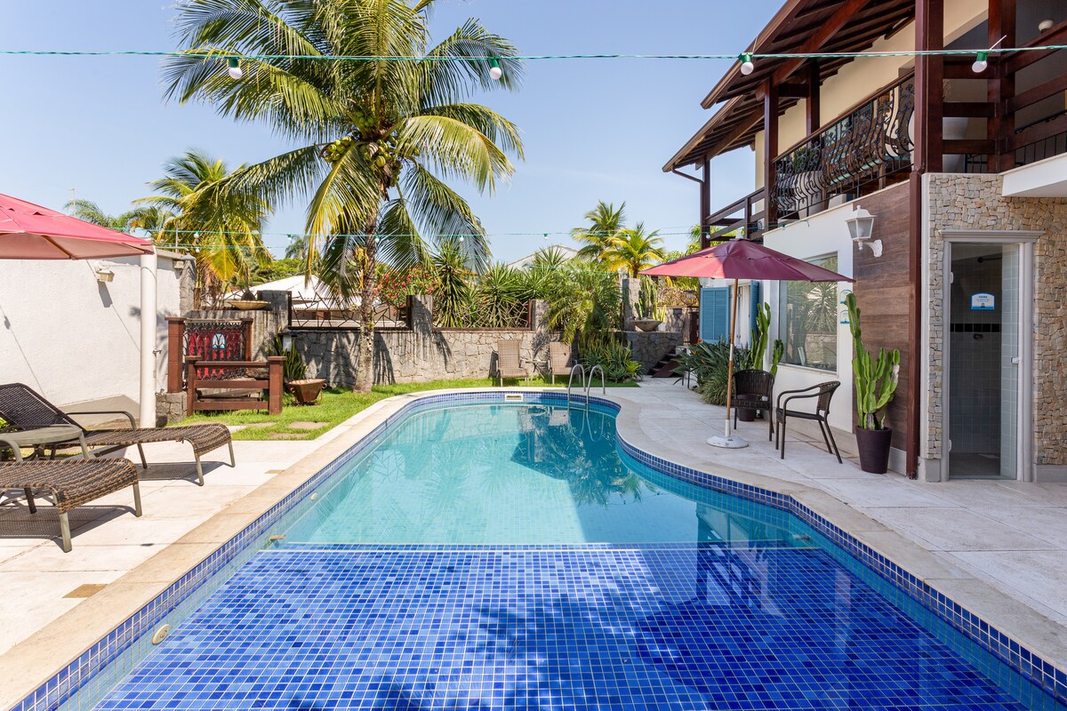 A Casa das Janelas Azuis é de estilo colonial reformada para oferecer todo o conforto a seus hóspedes. Está localizada a um passo da praia de Camboinhas, e a um outro passo da Praia do Sossego (selo de Bandeira Azul). Duas das melhores praias da Região Oceânica de Niterói. A casa possui suítes bem planejadas, algumas com banheiras, uma piscina, maravilhosa, área gourmet externa, e estacionamento. Todos os quartos passados por um aparelho de ozônio. Tudo isso à um passo da praia.