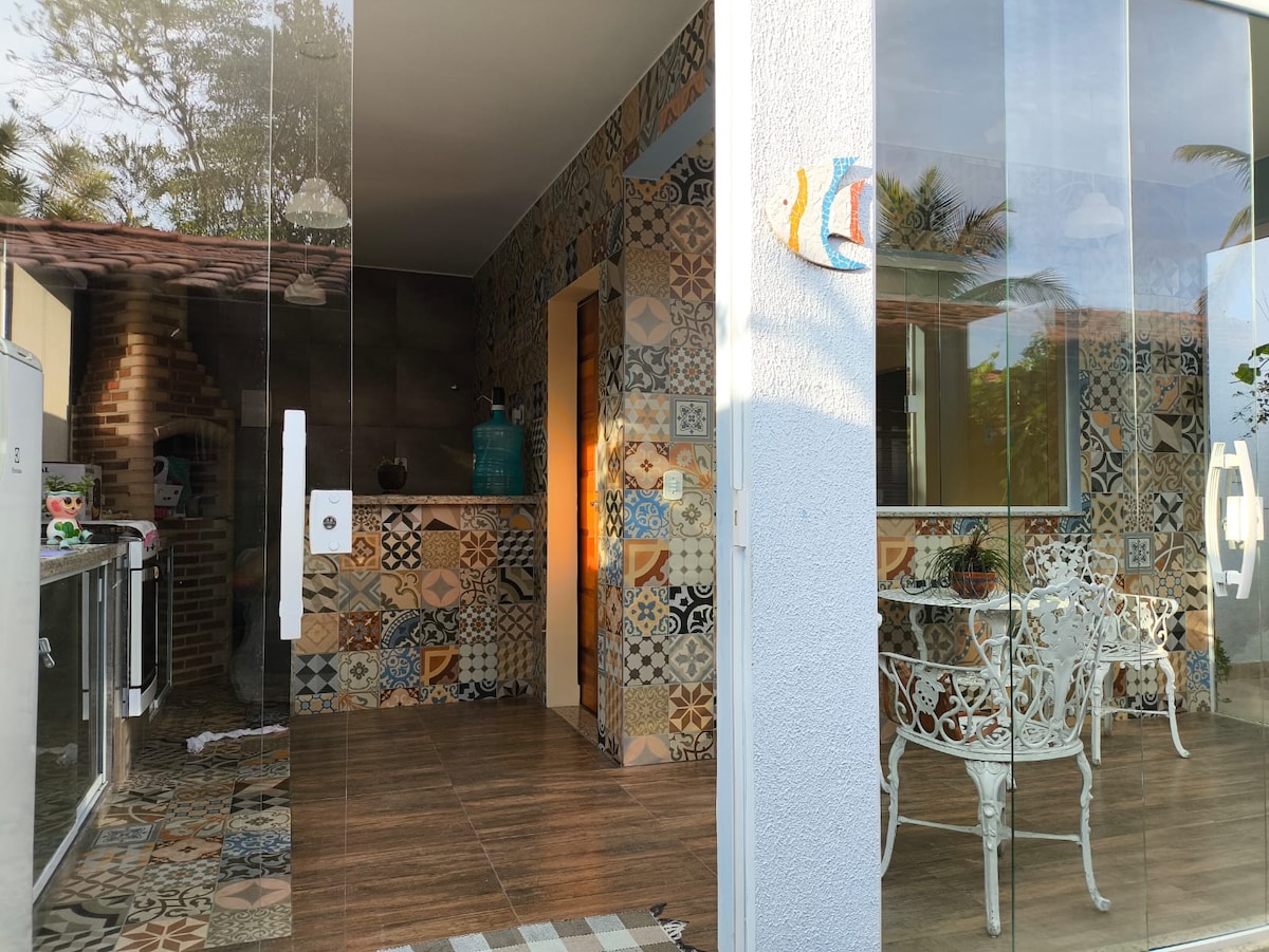 Recanto das Praias, located in the beautiful Oceanic Region of Niterói/RJ, is a fully independent annex. Separated from the main house by a shared yard, it features a barbecue area, hammock, and outdoor shower, perfect for relaxation. Guests also have access to a futsal court, playground, and two swimming pools (for children and adults). The condominium is safe, monitored by cameras and staff, and close to the region’s stunning beaches, such as Itacoatiara and Piratininga.