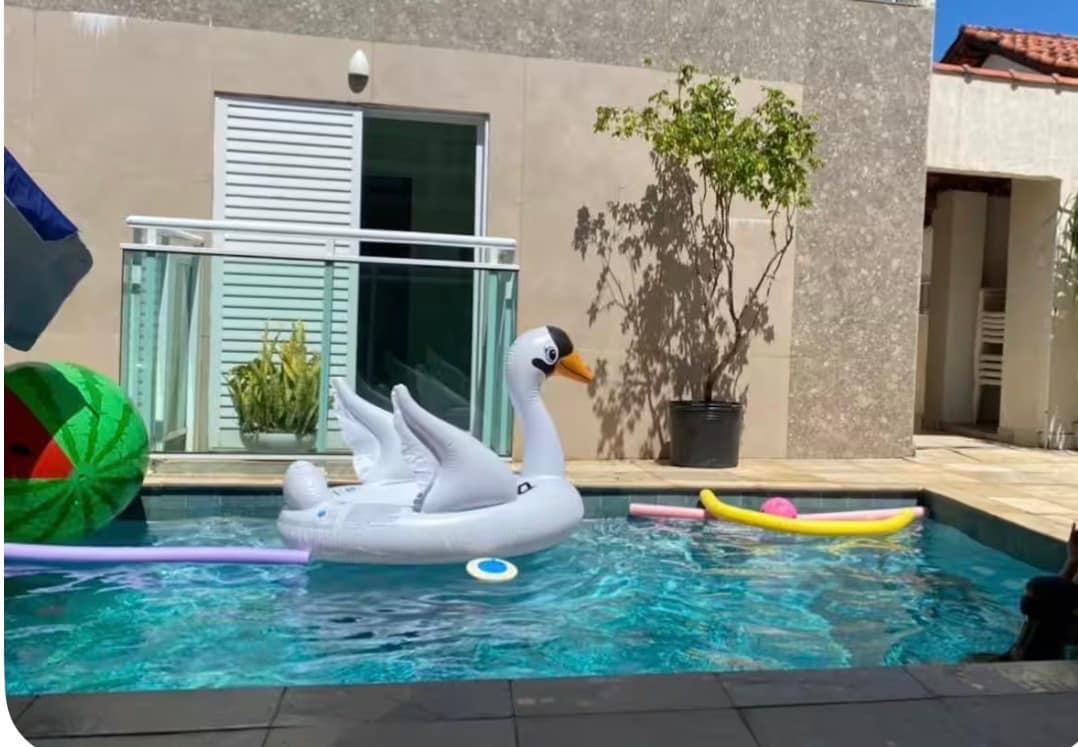 Casa 04 quartos , suíte , salão , varandão , cozinha completa , piscina , churrasqueira , wi-fi , tv led , sky 06 minutos da praia a pé , ar condicionado em todos quartos .Fornecemos roupa de cama. Pertinho do comércio , padaria, mercado e farmácia Menos de 5 minutos de carro. Garagem para 4 carros. PARCELE SUA ESTADIA EM ATÉ 6X SEM JUROS Nosso diferencial : Não é necessário pegar carro para ir a praia, são 6 minutos de caminhada .